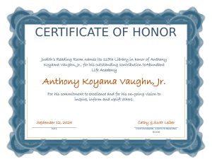 Certificate in Honor of Anthony Vaughn, Jr.(1)